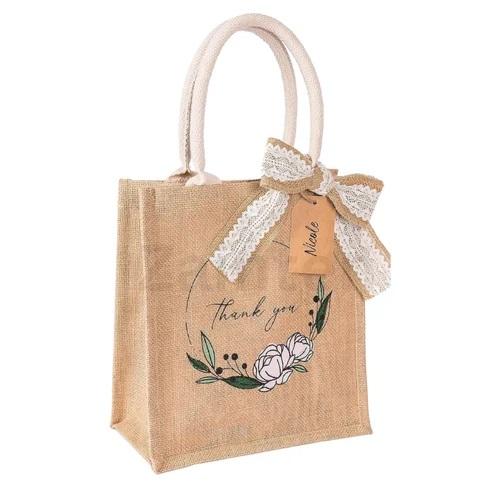 Bolsa de regalo de yute 100%, respetuosa con el medio ambiente, Color y logotipo personalizados, uso promocional de alto grado, precio bajo de mercado a la venta en todo el mundo