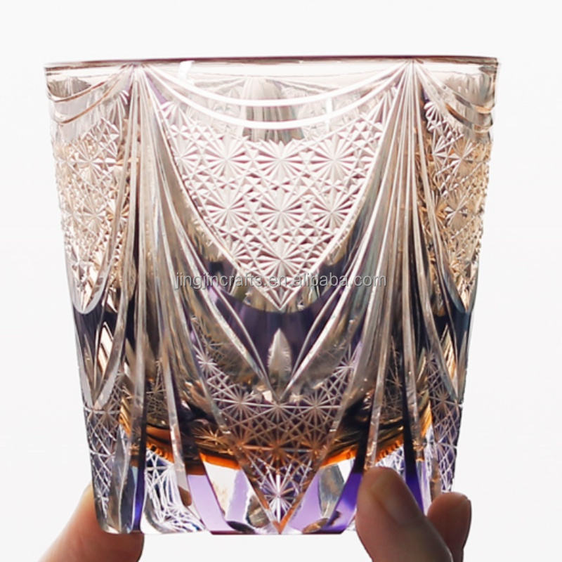 Vaso de whisky de vidrio grabado Edo Kiriko japonés de lujo de 11 oz, rocas heladas de ámbar púrpura antiguas, 320ml con caja de regalo