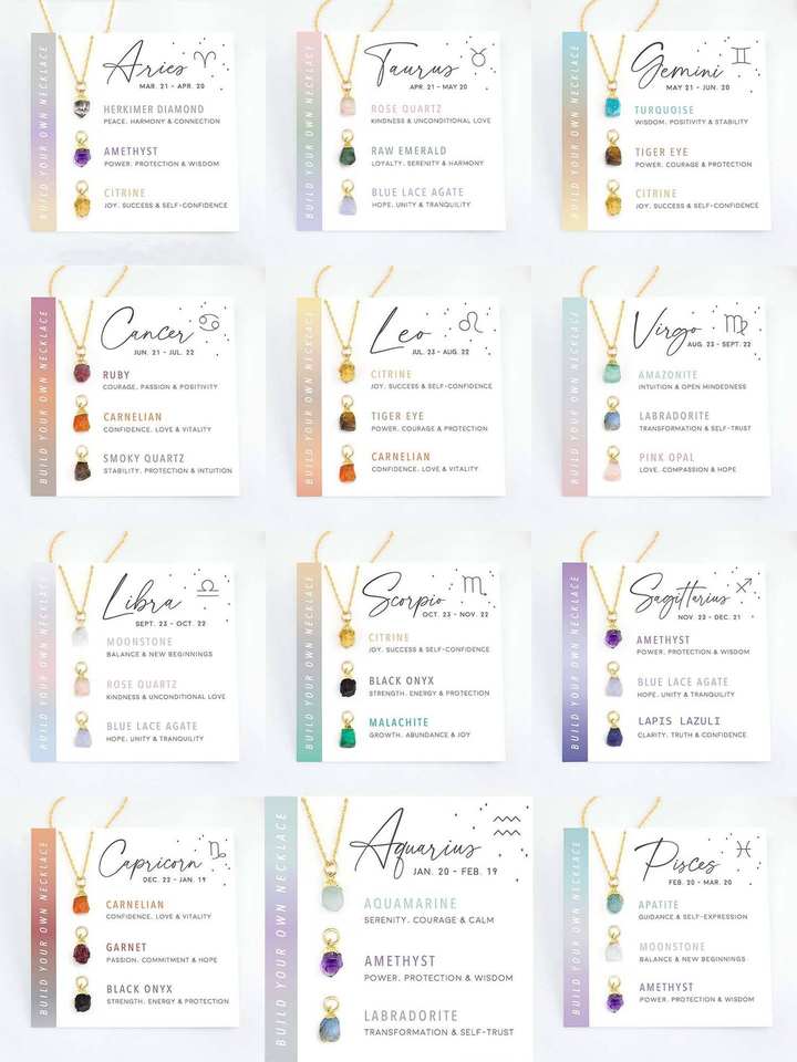 Set de 12 Collares de Cristal Curativo con Signos del Horóscopo, Collar de Acero Inoxidable con Baño de Oro de 18K, Collar con Piedra de Nacimiento de Aries