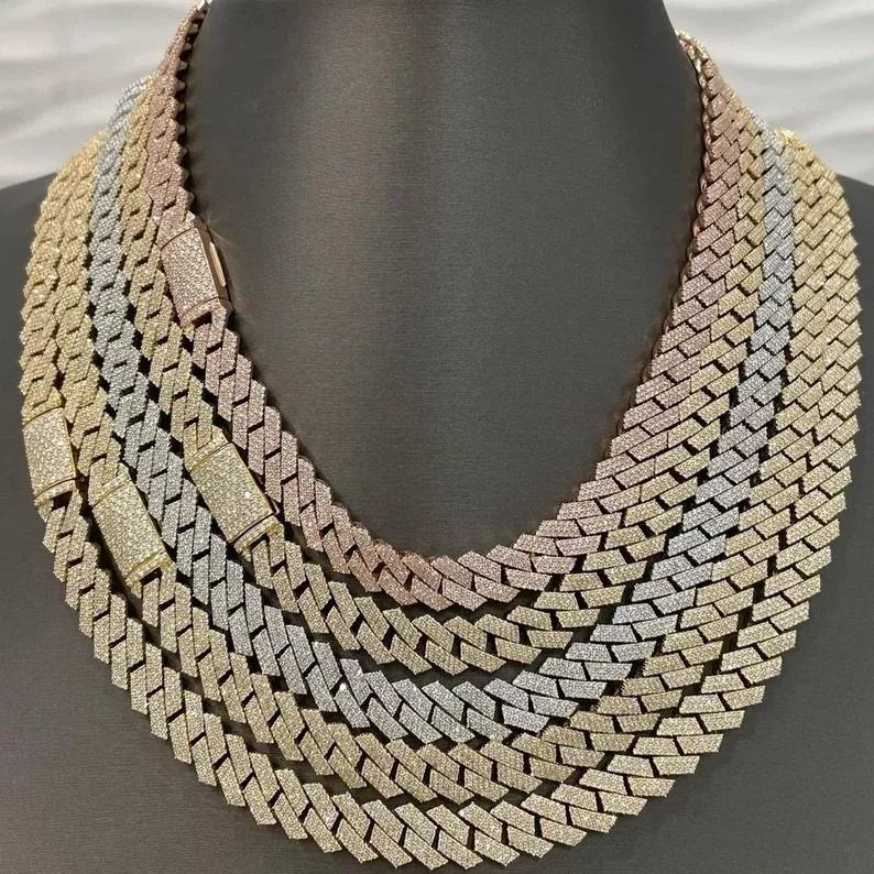 Collares Personalizados de Cadena Fina Cubana de 12 mm en Plata 925 Chapada en Oro Real con Diamantes VVS de Laboratorio Helados, Estilo Miami Hip Hop para Bodas y Moda