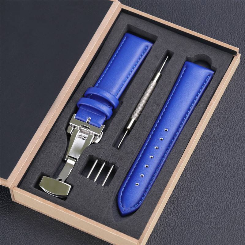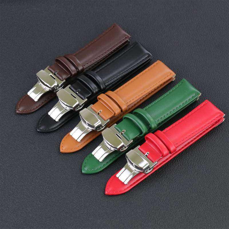 Correa de Reloj de Cuero Genuino para Samsung Galaxy Watch Pro Gear, Hebilla de Mariposa Plegable para Huawei GT, Amazfit, 18, 20 y 22mm