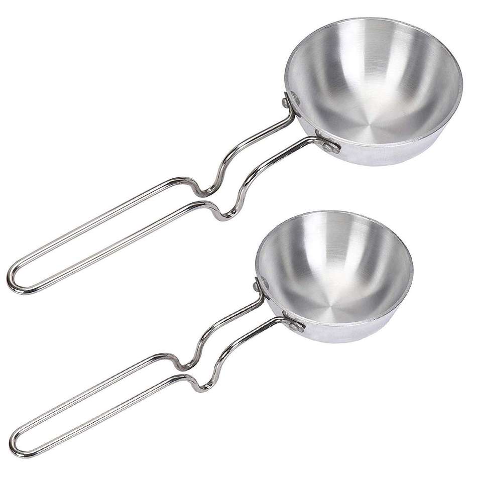 Juego de 2 piezas de aluminio pesado plateado Tadka Pan Utensilios de cocina pequeños y grandes