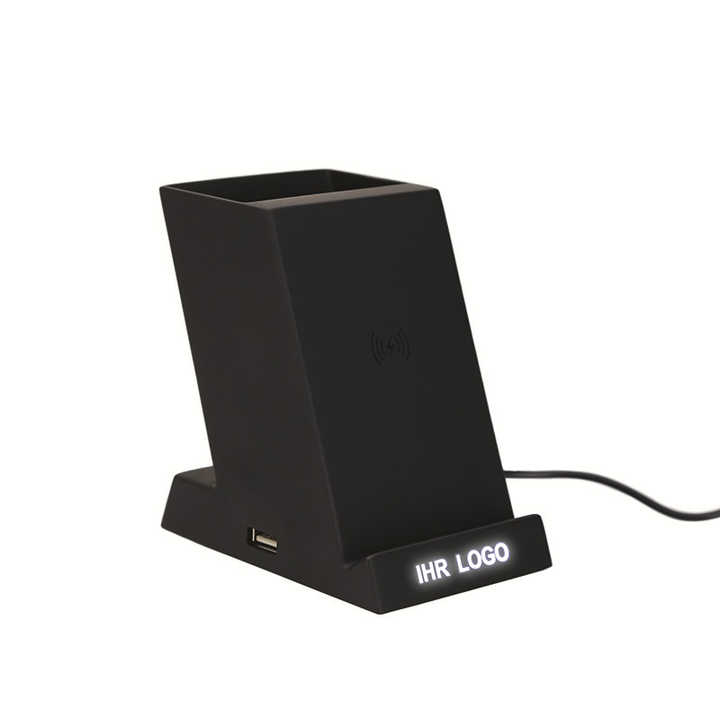OEM Logo 2-en-1 Carga rápida 10W Cargador de teléfono inalámbrico QC3.0 5V/1A Salida 9V/2A Entrada Pluma Contenedor Titular OTP OVP