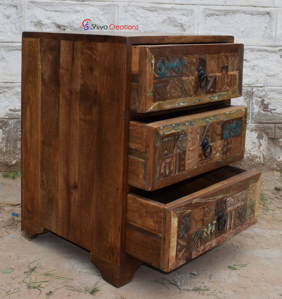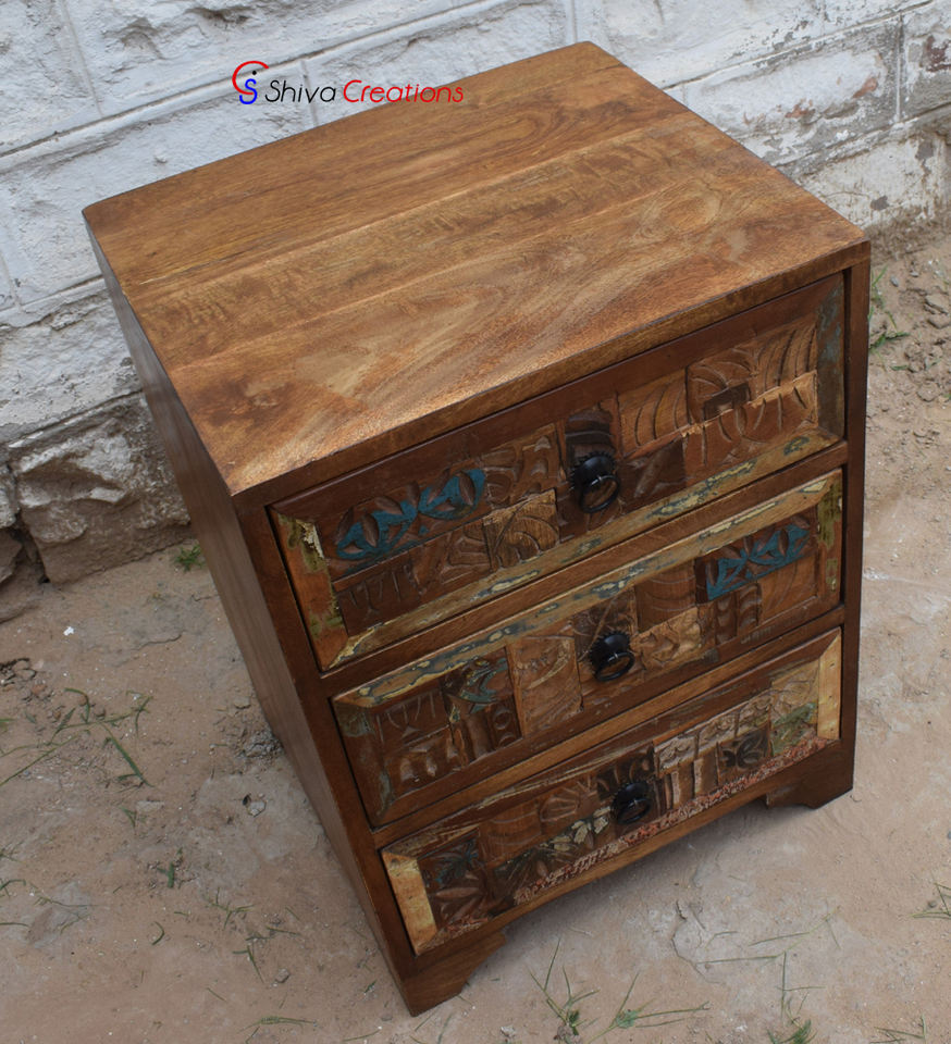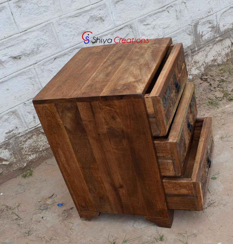 Design:3 carved drawers bedside table