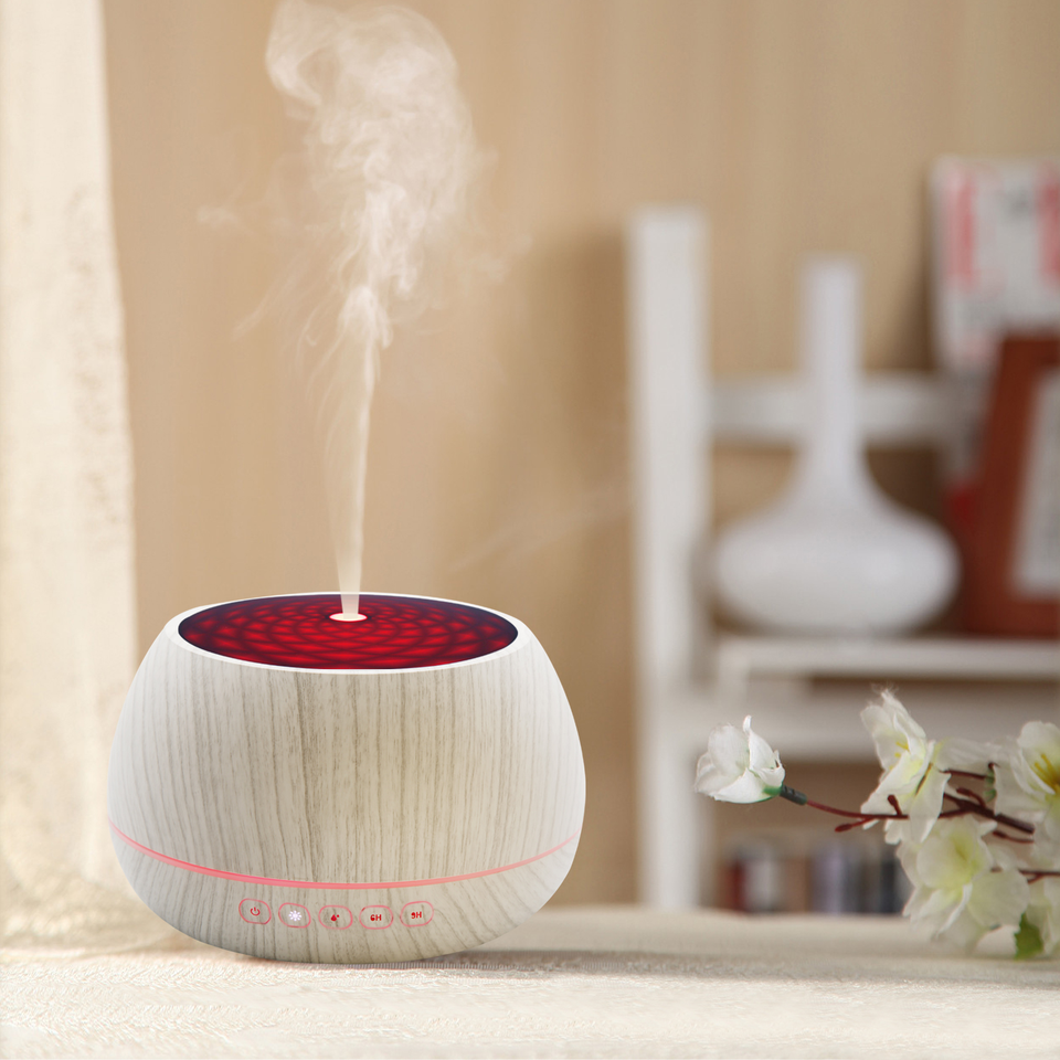 Nuevo Humidificador Difusor de Aroma Ultrasónico de 1000 ml con Control Remoto y Música, con Aspecto de Madera Blanca, en Oferta