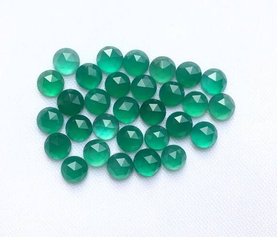 Palabra clave:Ónix Verde cabujón facetado de 4mm, gema redonda de Ónix Verde talla rosa