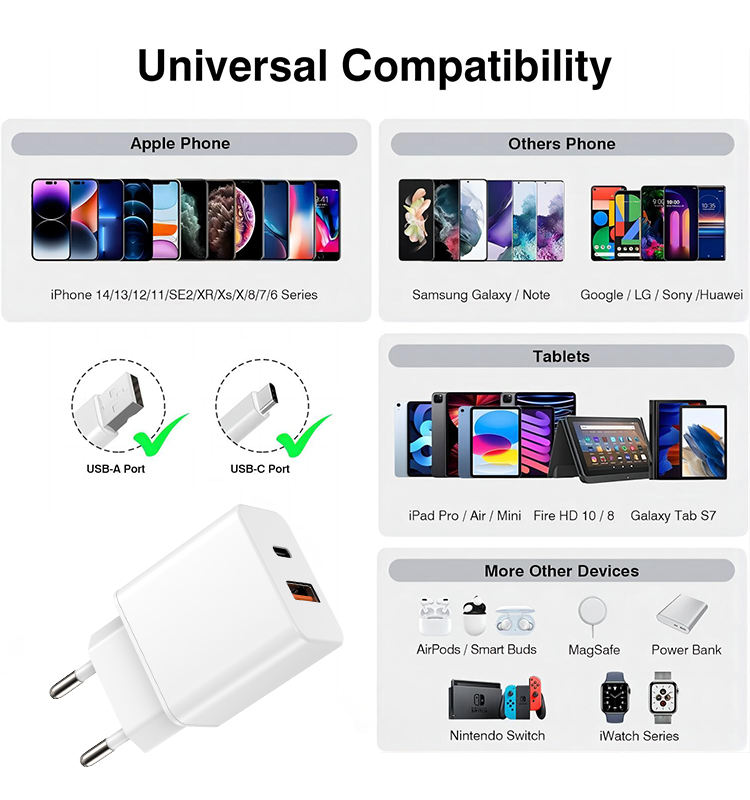 Palabras clave:Cargador rápido USB-C de la pared del cargador 20W