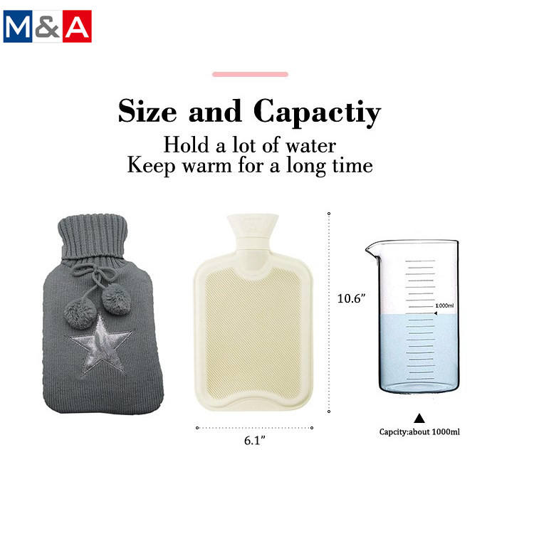 1 unidad con una etiqueta colgante en una bolsa de plástico, 1 unidad/bolsa de plástico, 36 unidades/ctn Cubierta tejida de color gris botella de agua caliente de goma 2L