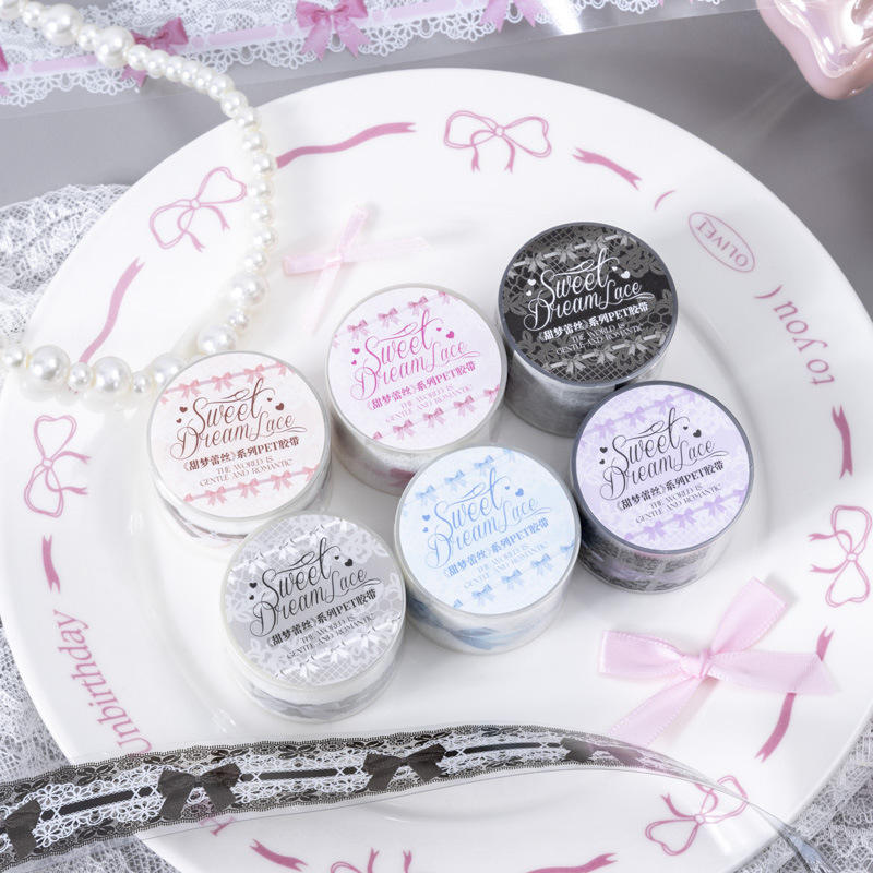 Sweet Dreams Lace Series 2M/rollo de cinta PET impermeable caucho activado por agua adhesivo Material decorativo pegatinas para enmascarar
