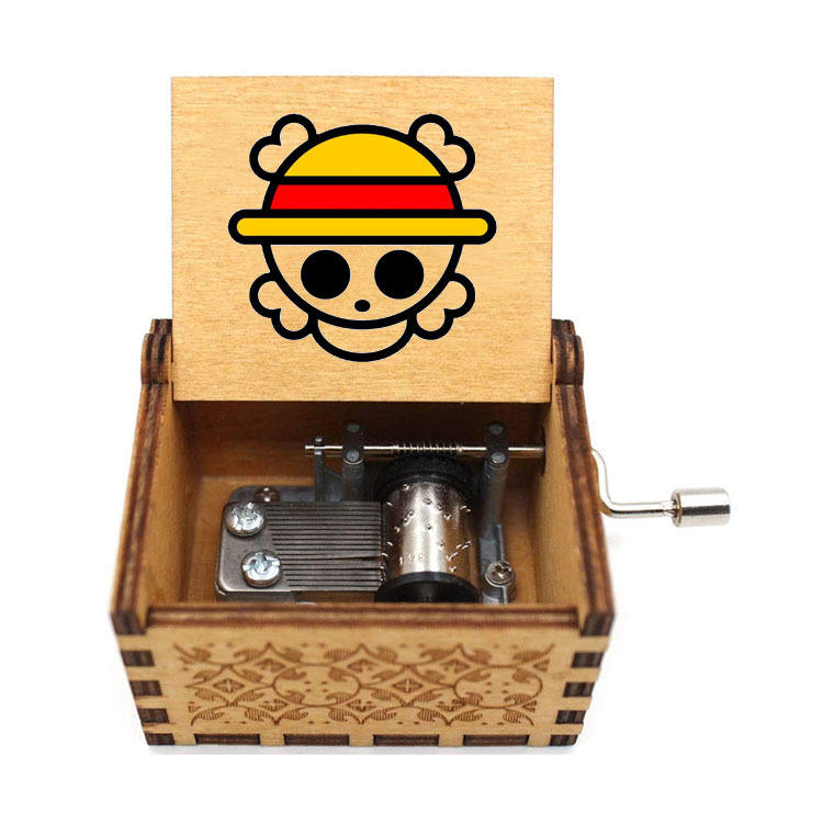 300 diseños gran oferta regalo melodía manivela de mano grabado con láser Anime One Pieces Luffy somos canción manivela de mano caja de música de madera