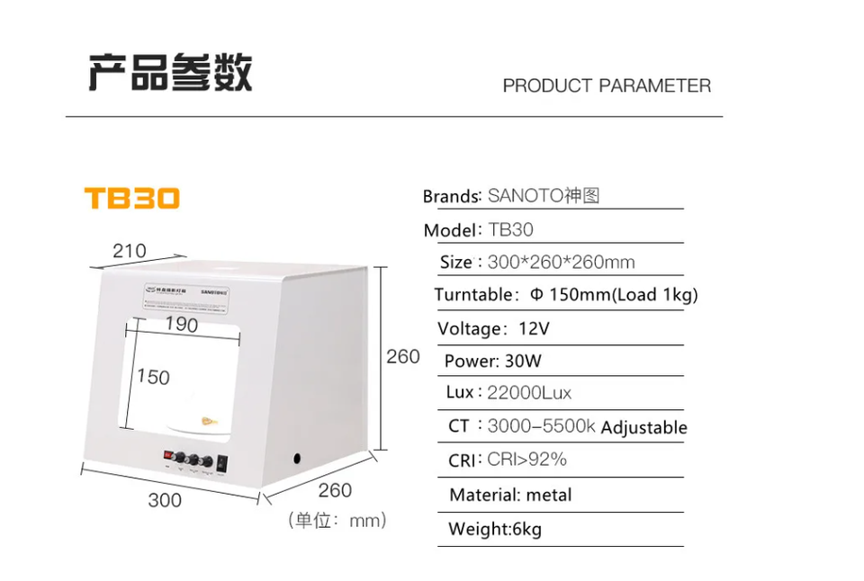 Caja de Luz para Fotografía de Joyería TB300 de 30 cm, Softbox con Plataforma Giratoria Integrada para Fotografía y Video de Joyería