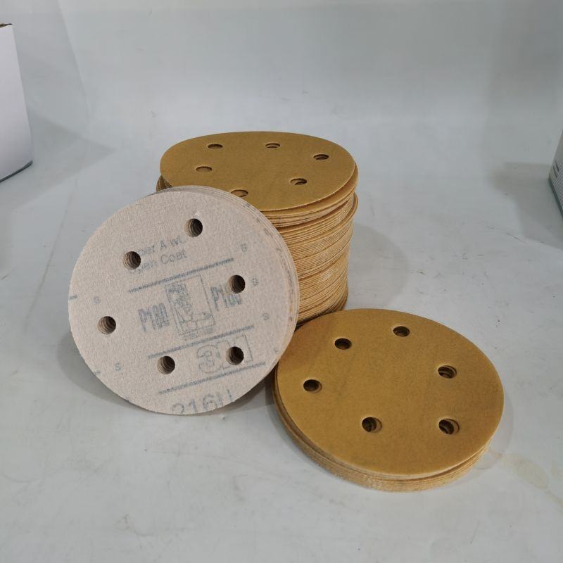 Discos de Papel de Lija Abrasivo 3M216U de 5 Pulgadas (125 mm), Grano 125, Malla 100, 100 Piezas/Caja, Resistentes al Desgaste y Duraderos para Lijar Automóviles
