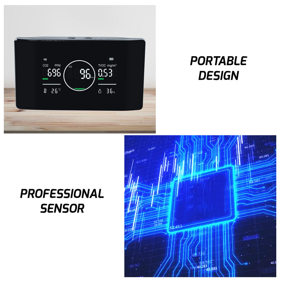 CO₂, Temperatura, Humedad, TVOC, COElementos detectables