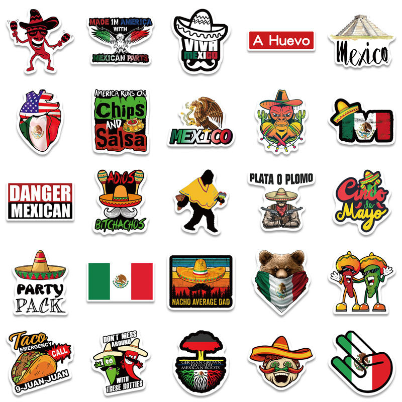 50 Uds., superventas, pegatinas de estilo mexicano, DIY decoración personalizada, pegatinas impermeables para equipaje de guitarra