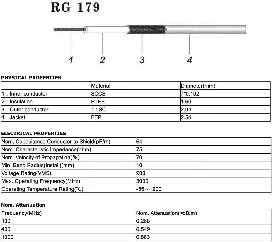 Tipo de cable:Cable RG179 o petición