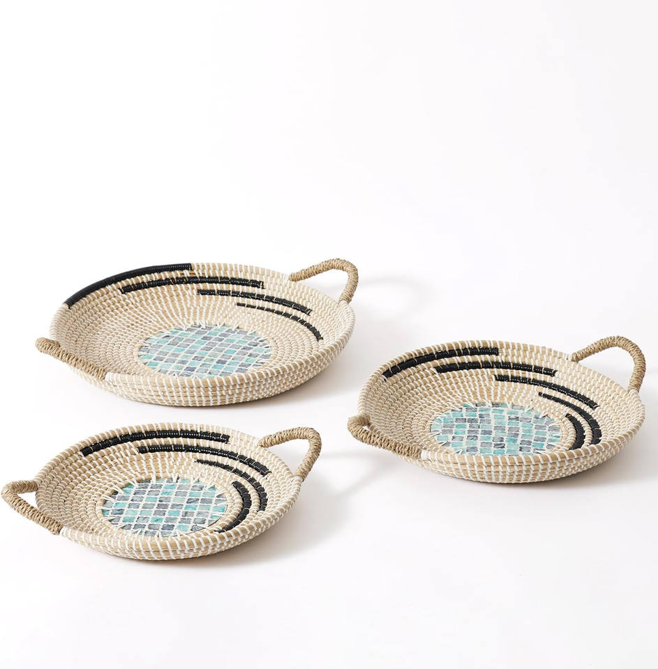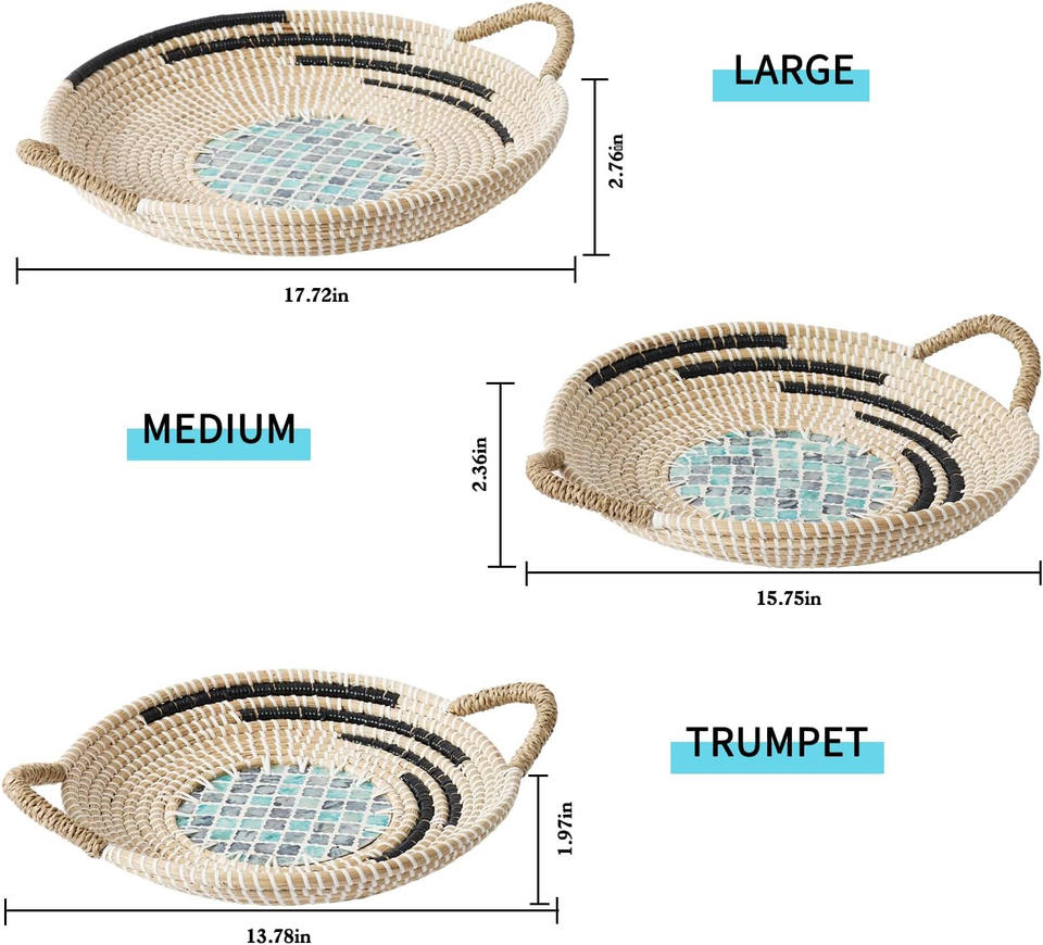 Seagrass hecho a mano con Madre de perla sirviendo bandejaNombre del producto