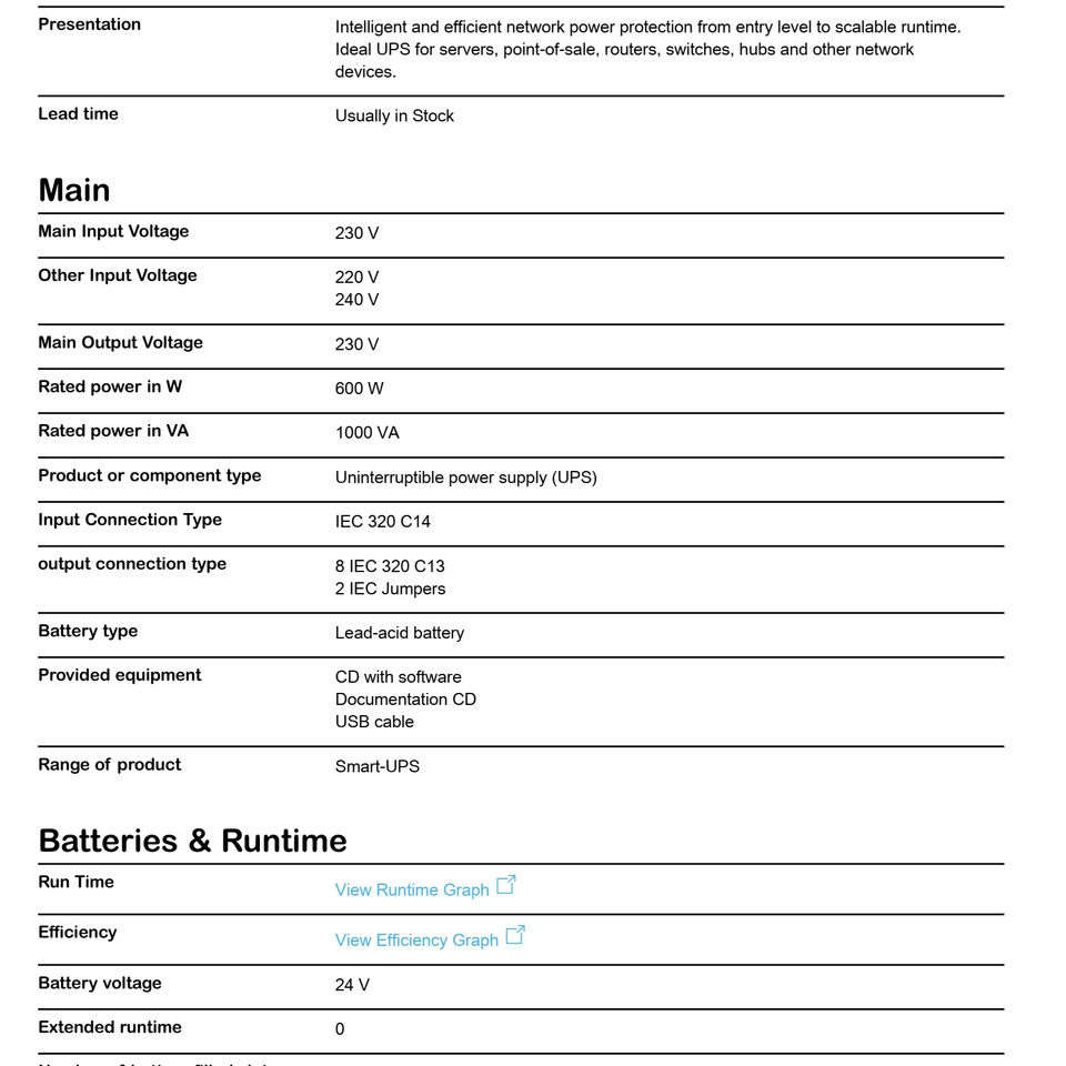 Rated power in VA:1000 VA