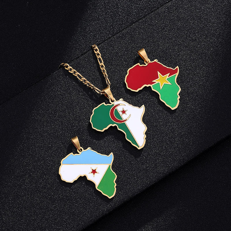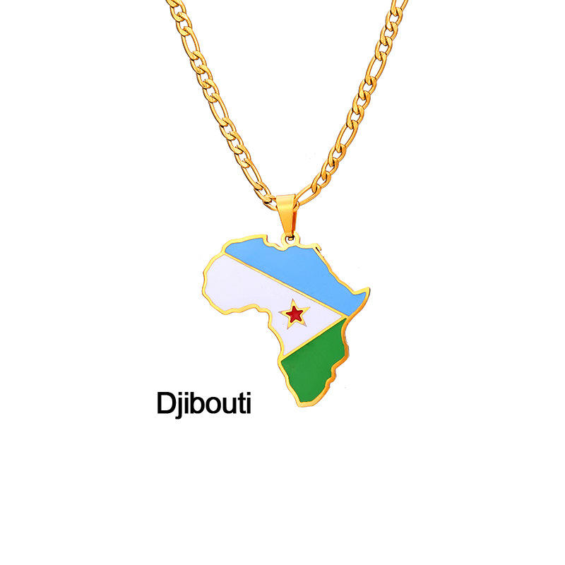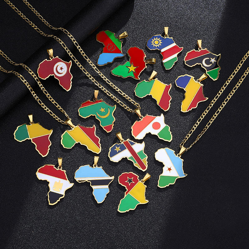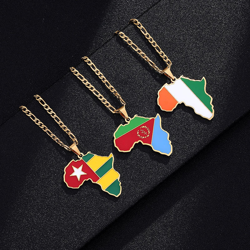 Collar con colgante con bandera del mapa de África, colgante de acero inoxidable de Color dorado de Ghana, nigeriano, Guinea y África, regalo de joyería africana