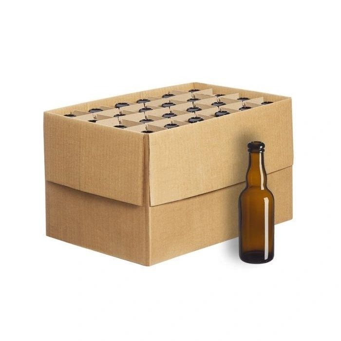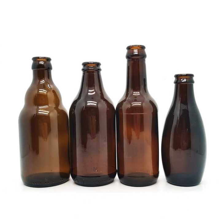 Botella de cerveza verde ámbar con tapa de corona Embalaje de vidrio transparente de estilo belga para whisky y cerveza Disponible en 250ml 330ml