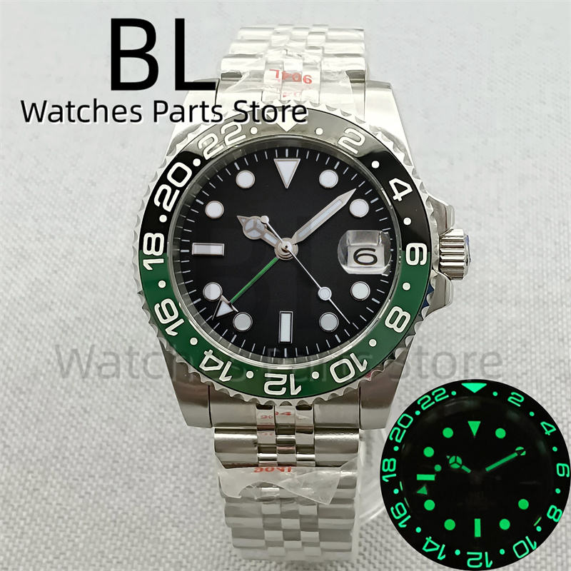 BLIGER 40mm GMT Reloj para hombre Bisel de cerámica Cristal de zafiro Esfera luminosa 10Bar Cristal de zafiro resistente al agua Acero inoxidable Glideclas