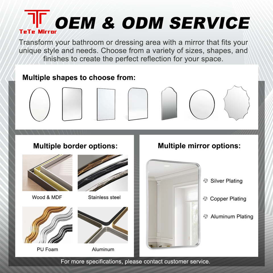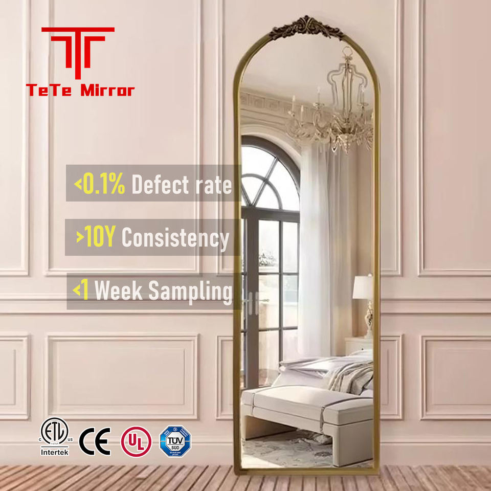 Espejo de baño personalizado TETE para sala de estar, espejo de tocador dorado de longitud completa, arco de pared, espejos con marco de PU francés Vintage