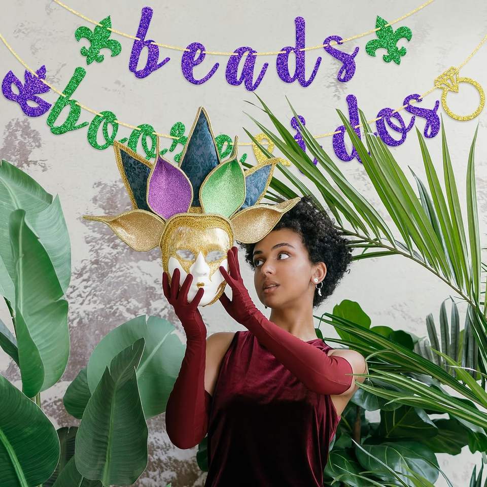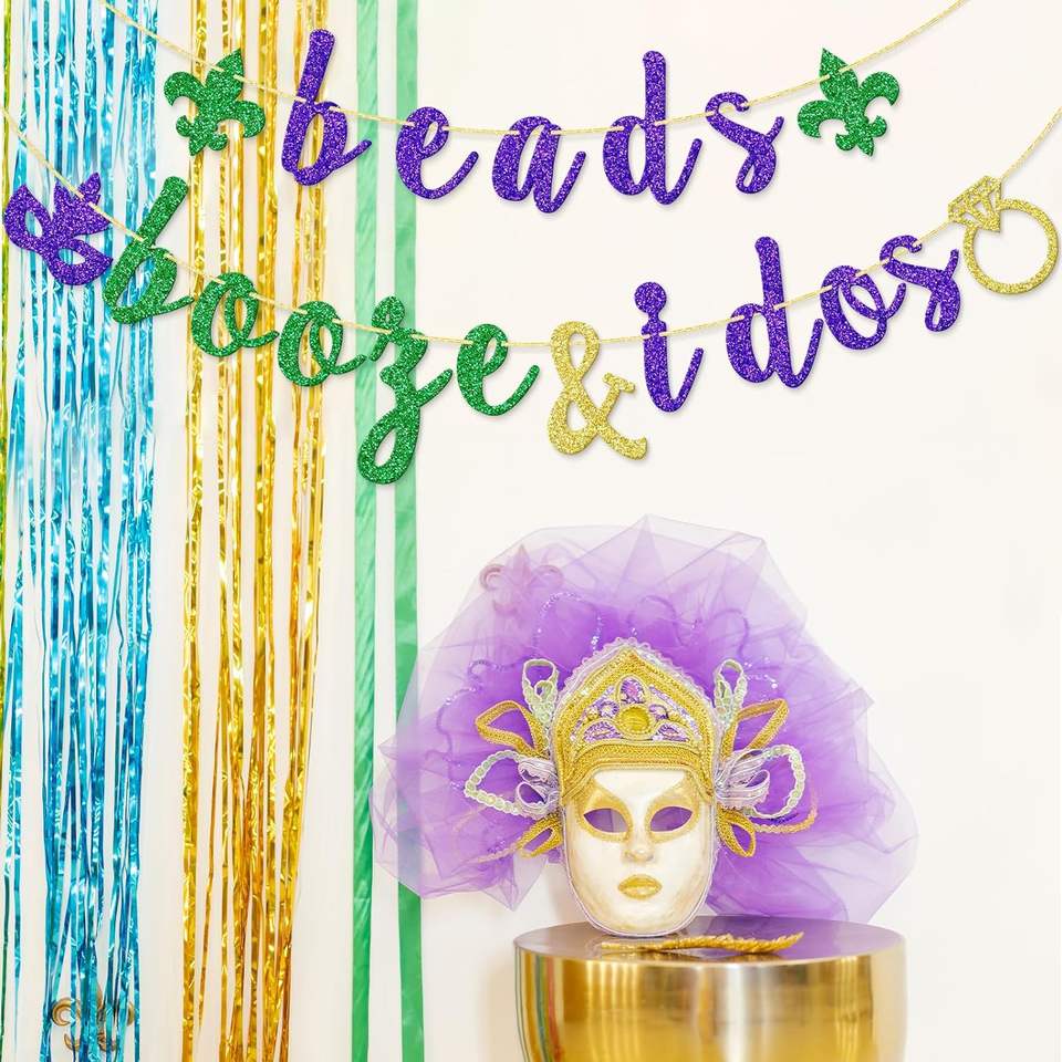 Beads Booze and I Dos Banner Decoraciones DE BODA New Orleans Bachlorette Party Sign Pre-Strung Bach Supplies