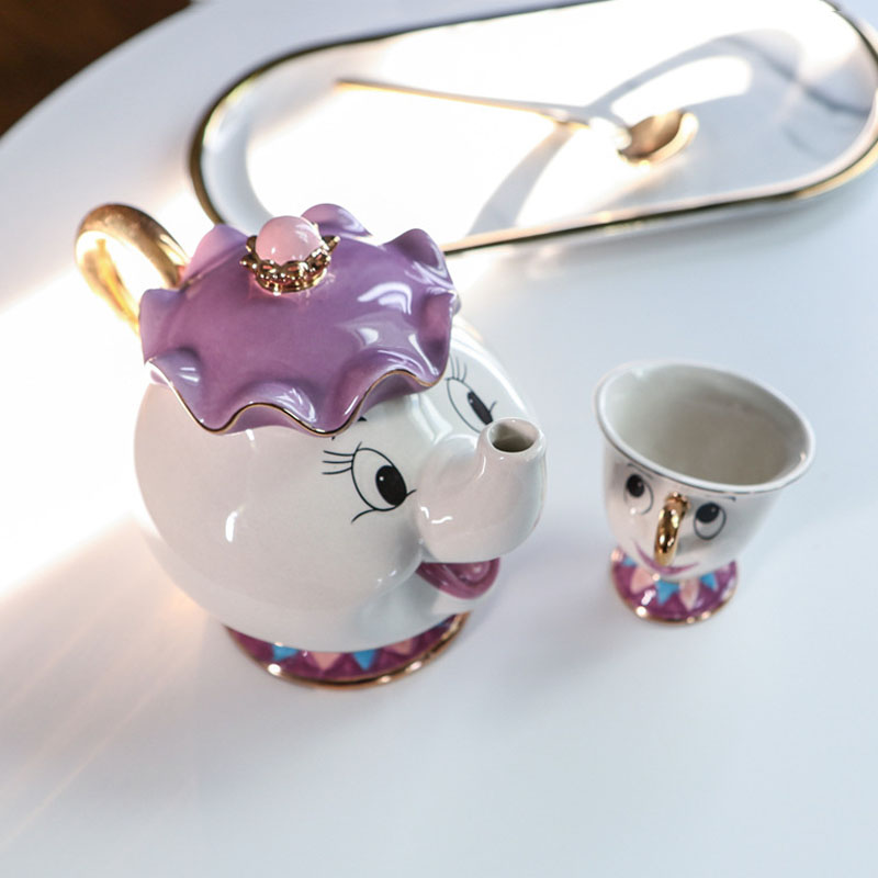 Juego de Taza y Platillo de Cerámica de La Bella y la Bestia, Taza de Té de Porcelana Pintada de la Señora Potts