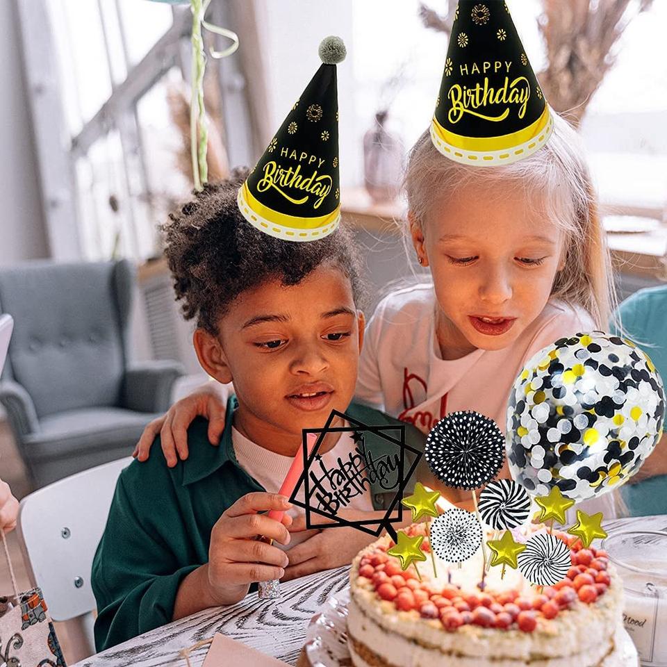 Conjunto de globos decorativos de pastel de feliz cumpleaños para hombre negro decoración de tarjeta de fiesta de cumpleaños