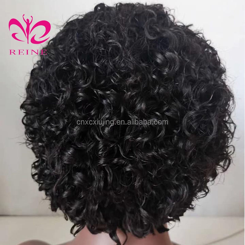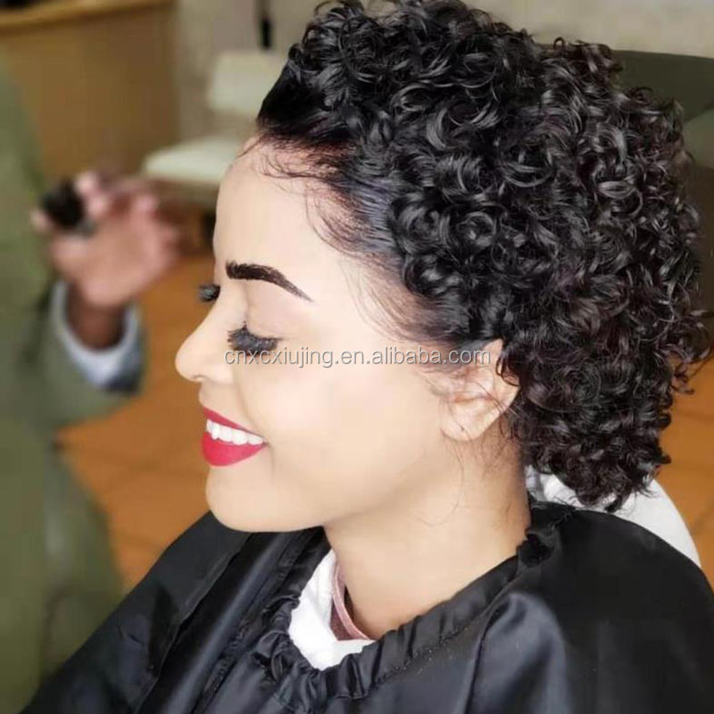 Pelucas de Cabello Humano Virgen Brasileño con Frente de Encaje para Mujeres Negras, Color Natural, Remy, Rizado, Corte Bob Corto