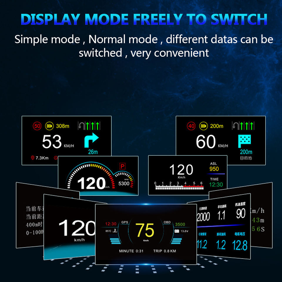C500 Car OBD2 HUD Head up Display Espejo Proyector a bordo Computadora Reloj Alarma Cartronics Auto Accesorios