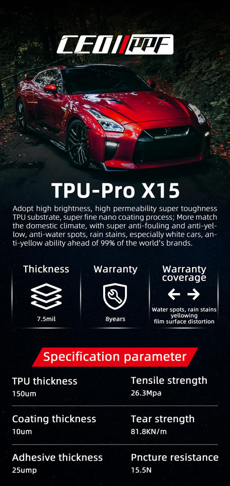 Color de la piel:PPF Transparente/Mate Satinado/Negro/Color
