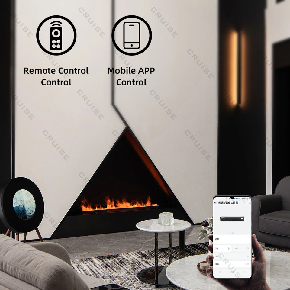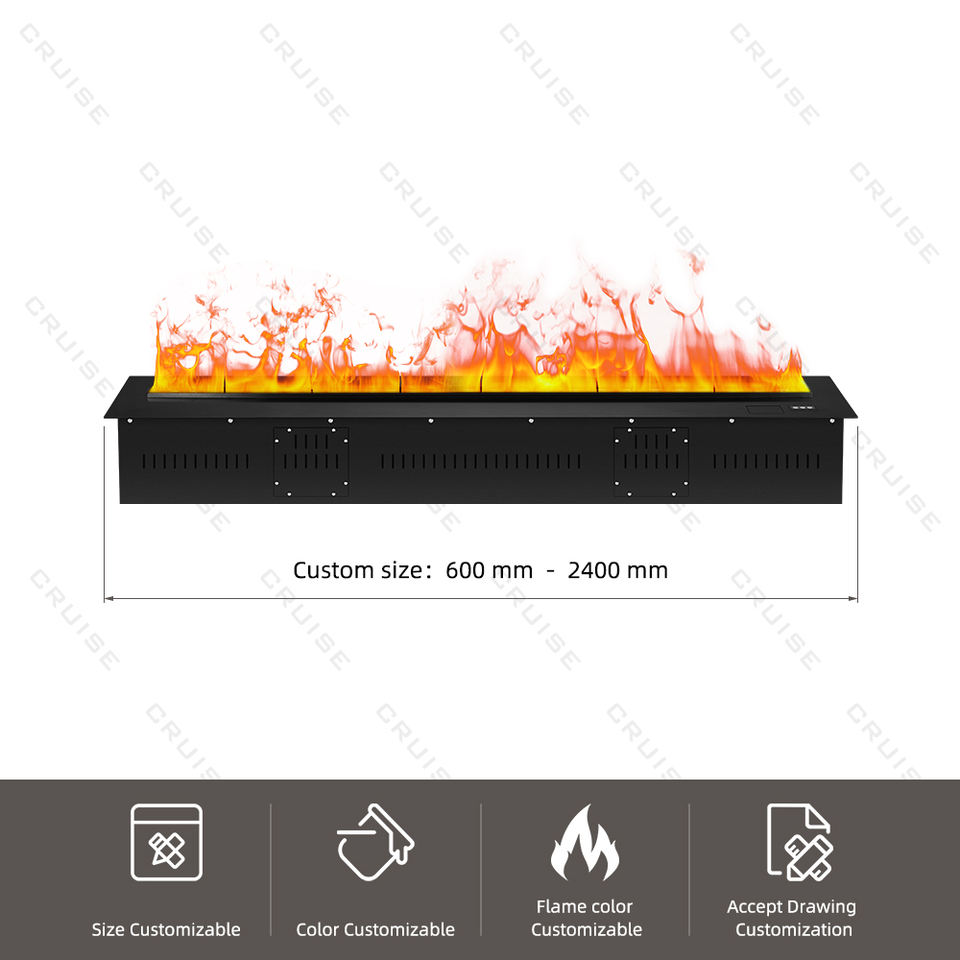 CRUISE 220V-240V Perilla continua Ajuste de llama 3mm Acero inoxidable ultrafino 1200mm Chimenea atomizadora 3D para interiores sin chimenea