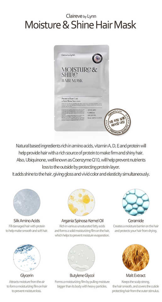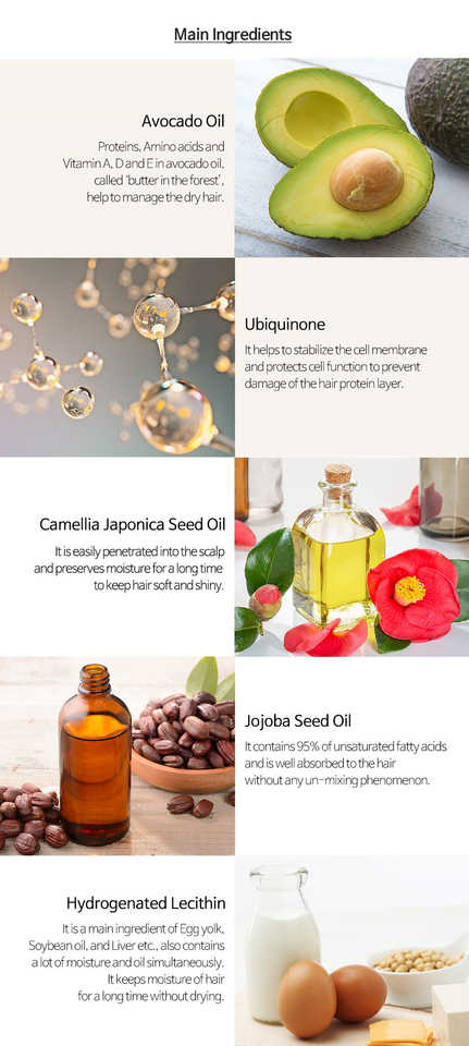 Silk Amino Acids, Argania Spinosa Kernel Oil, Ceramide, Glycerin, Butylene Glycol, Malt Extract, Avocado oil, Ubiquinone, Camella Japonica Seed Oil, Jojoba Seed Oil, Hydrogenated LecithinIngrediente