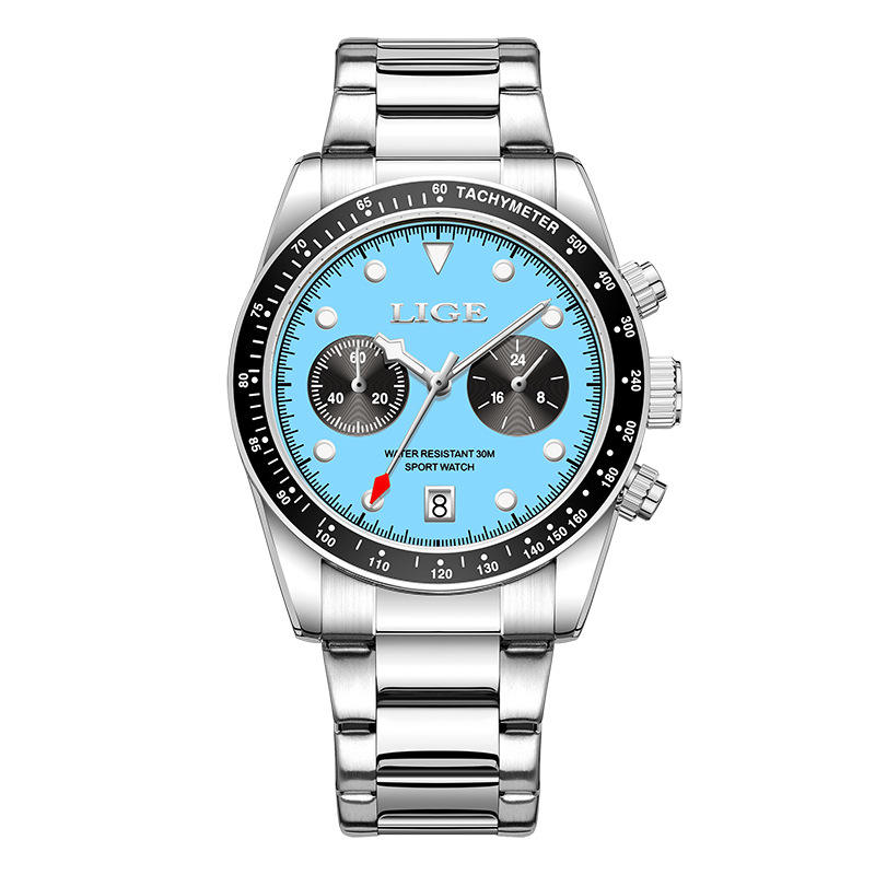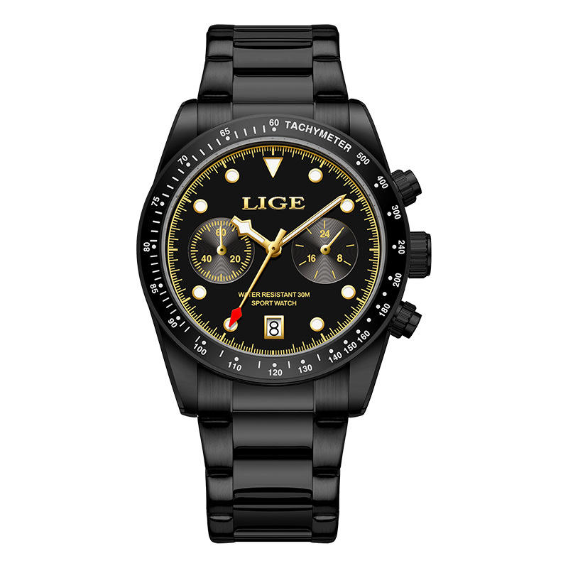 Característica:Luminoso, Cronógrafo, Día/fecha, Impermeable, Manos luminosas, Cronómetro