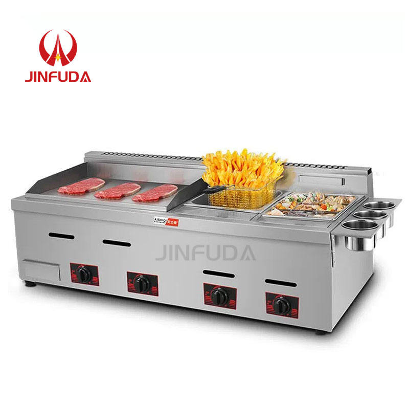Plancha y Freidora Comercial de Acero Inoxidable a Gas con Control Automático, Capacidad de 12L, Equipo de Cocina Multifuncional