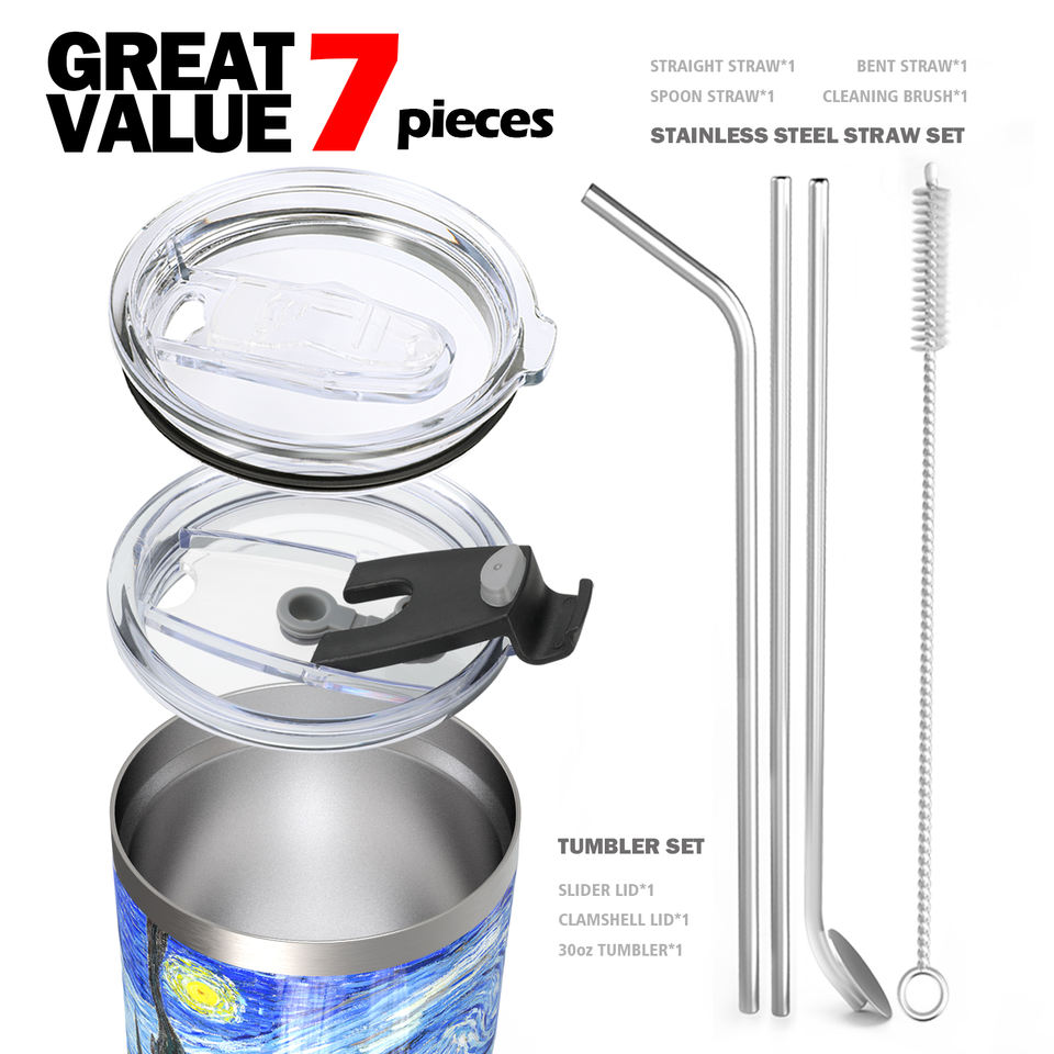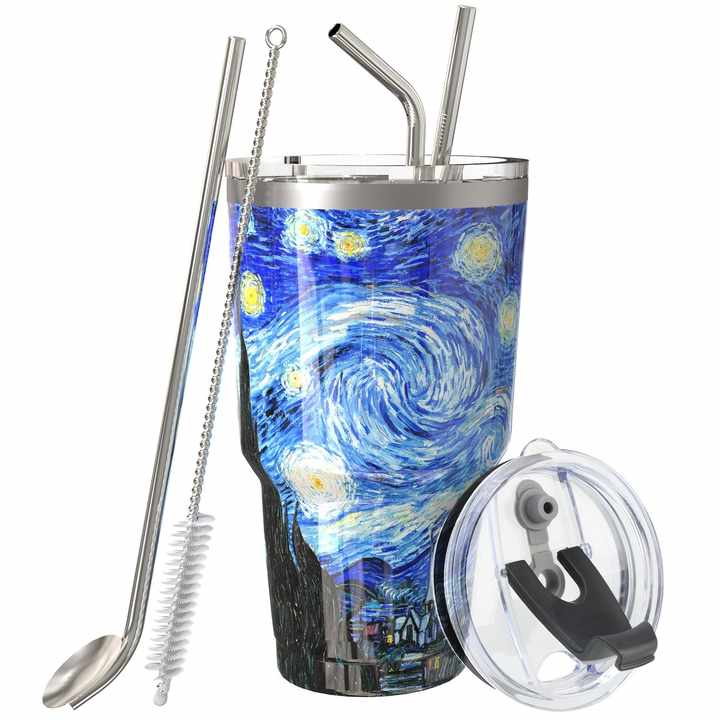 Logotipo personalizado cielo estrellado transferencia de agua Impresión de transferencia de agua tapa deslizante 30oz viaje taza de café 304SS vaso