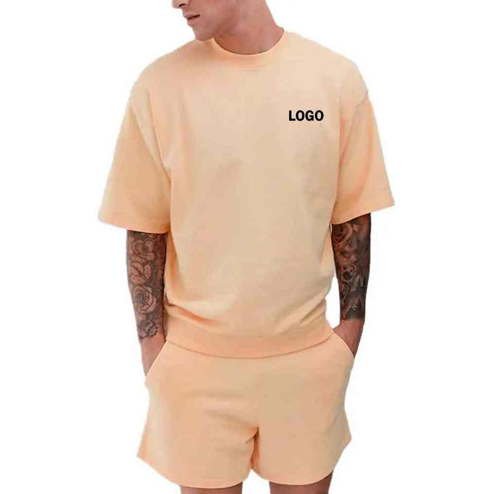 Camisetas y pantalones cortos lisos con logotipo personalizado para hombre, conjunto de dos piezas de gran venta de verano 2025, conjuntos gemelos de estilo callejero para hombre de talla grande