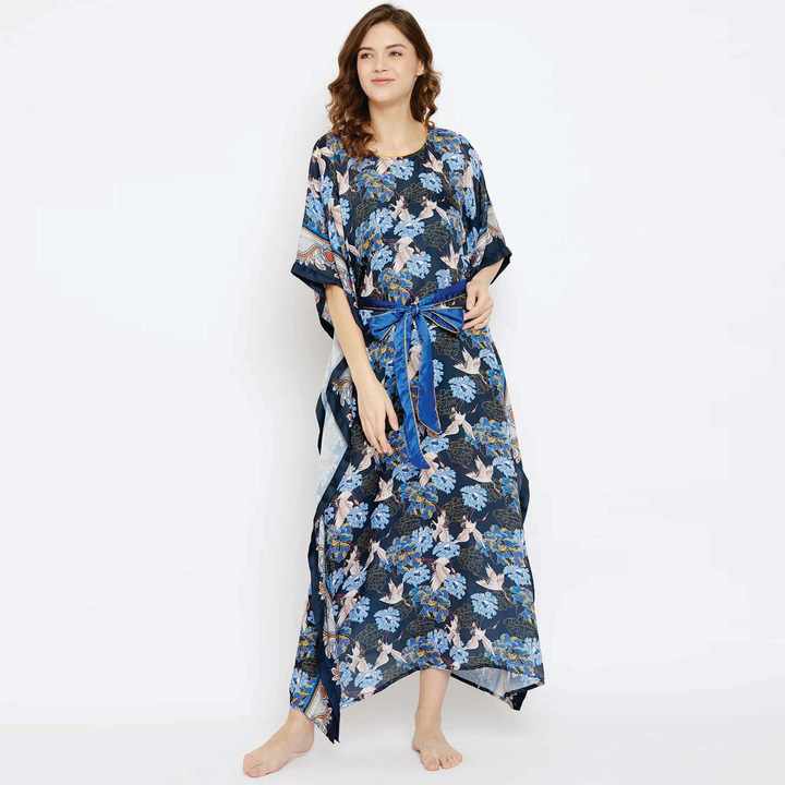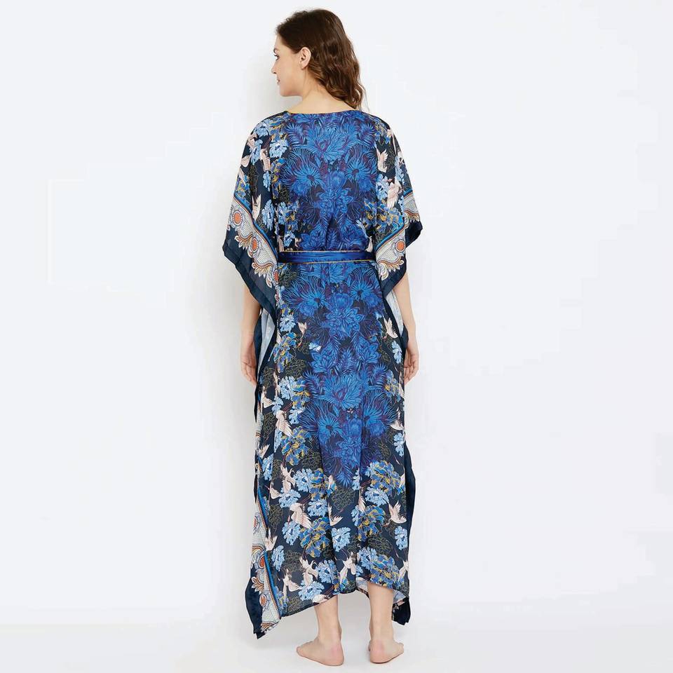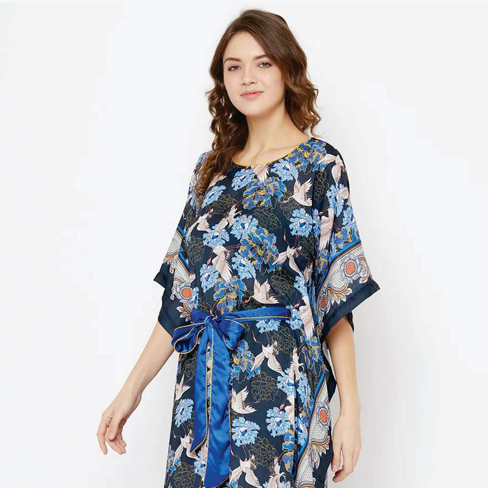 OEM personalizado Slim Fit cuello redondo poliéster seda satén Imperial patio azul satén Loungewear Kaftan