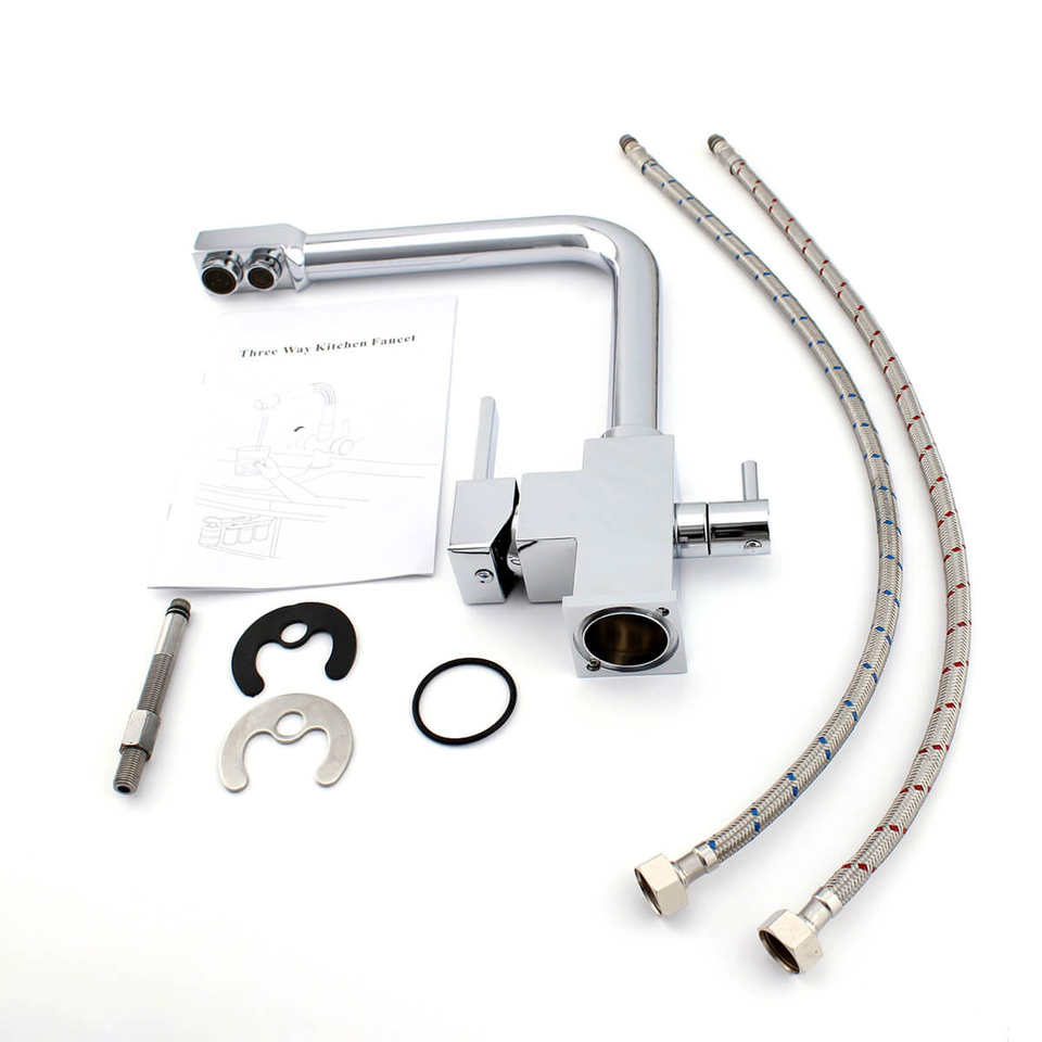 Gran oferta DOGO, grifo de cocina de Agua purificada plateado de 3 vías, manijas dobles, filtro para beber, grifo de cocina de latón