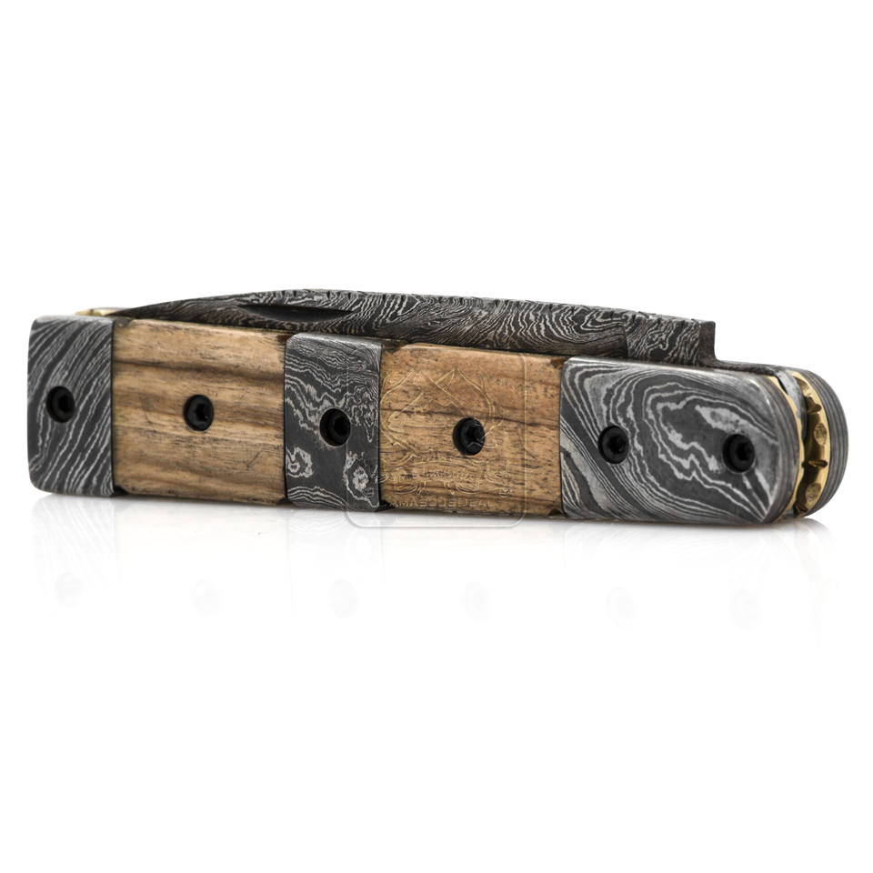 Material DE LA MANIJA:Madera de cebra con refuerzos de acero de Damasco