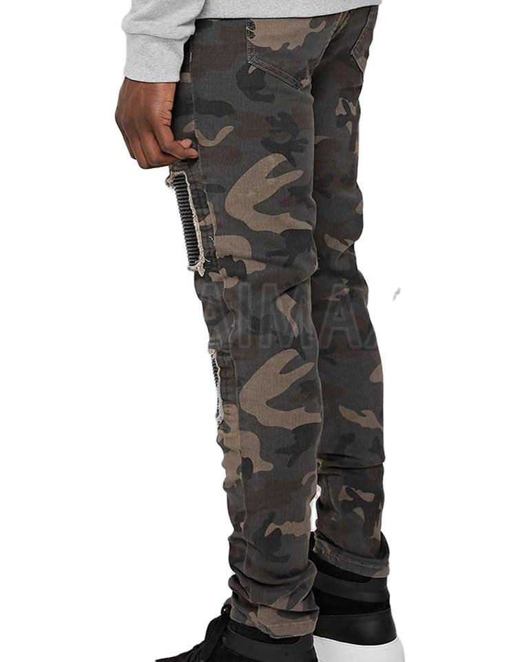 Custom Printed Camo Skinny Jeans Slim Fit Desgastado de alta cintura de cintura media ODM Suministro de estilo Y2K Tela de mezclilla de color