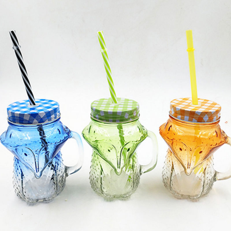 Para el diseño de moda barato 450 mL forma búho cristal claro Mason Jar