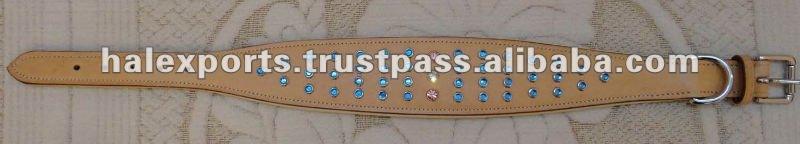 Collar para perro con piedras en tambor de alta calidad, cuero indio teñido con hebillas de latón, Clips y patrón de banda de rodadura de nailon