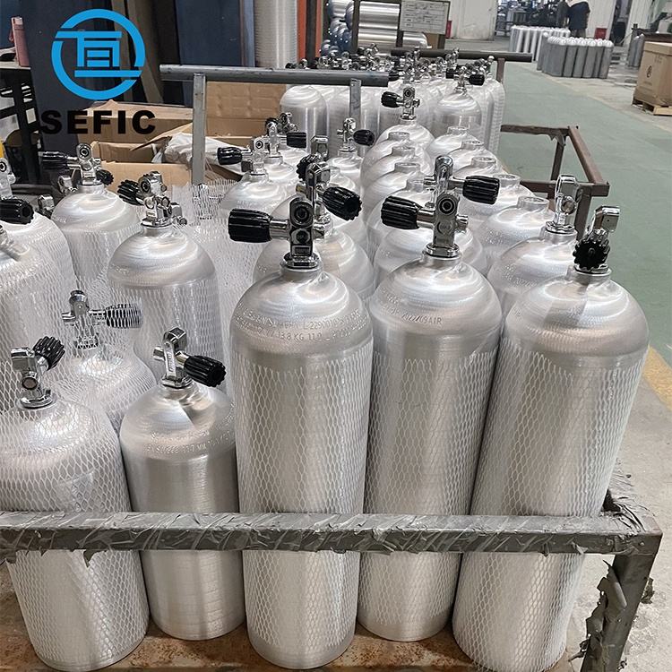ENISO7866 Ce 6l 7l 11.1l 12l Tanque de aire Scuba Botella de aluminio vacía con válvula Din/yugo 3/4-14NPSN