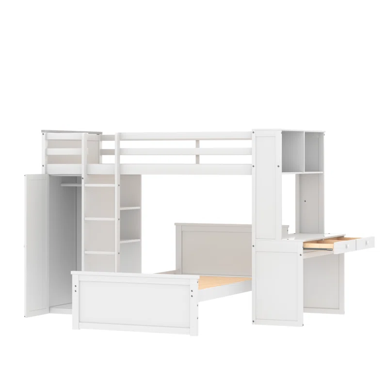 Nombre del producto:Doble sobre doble en forma de L litera con un escritorio cajones y armarios