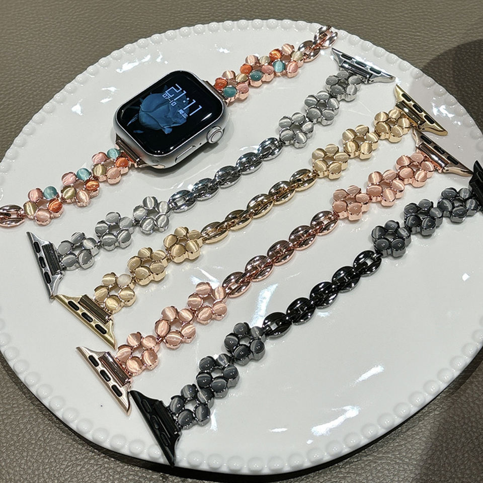 Correas de reloj de flores femeninas de moda para Apple Watch 8 Ultra 49mm 3 4 5 6 7 pulsera de muñeca para IWatch 38 45mm correa de aleación correas de reloj