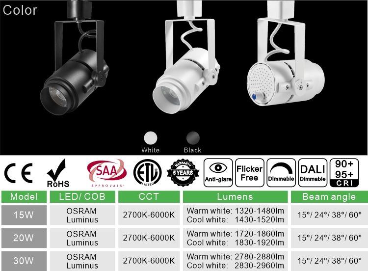 Palabras clave 1:Luz estrecha del punto del haz LED, luz de la pista del techo, Luz del carril del LED