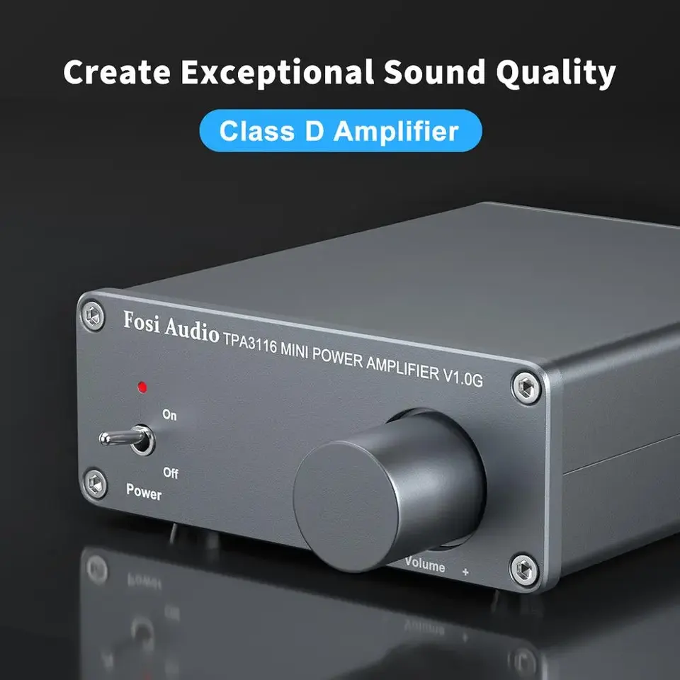 Fosi Audio V1.0 AMPLIFICADOR DE POTENCIA DE Audio estéreo de 2 canales Clase D Mini amplificador Digital profesional Hi-Fi para altavoces domésticos 50W X2FS