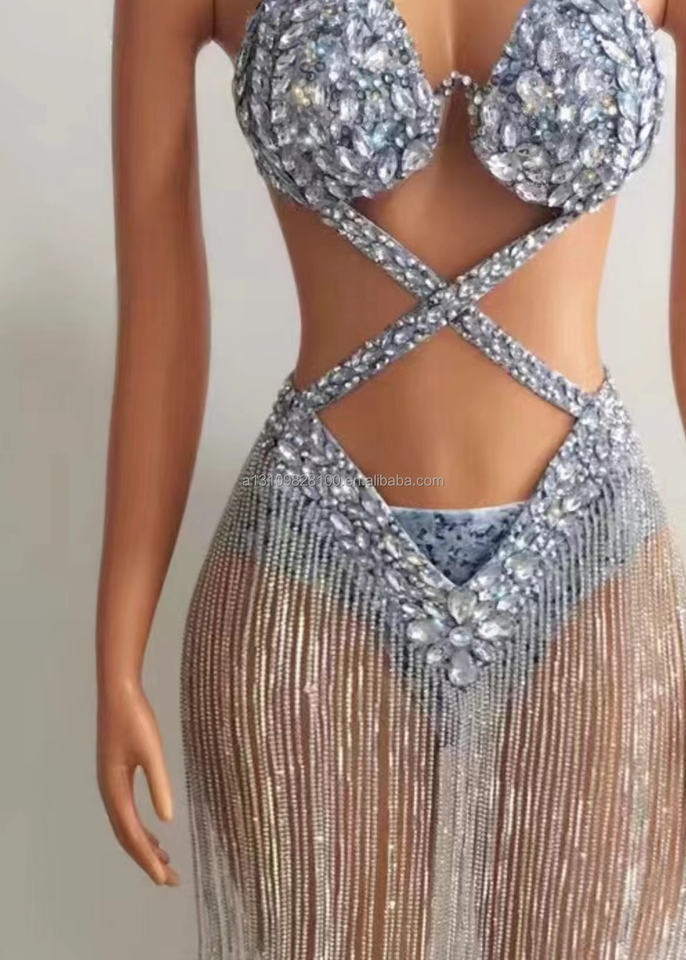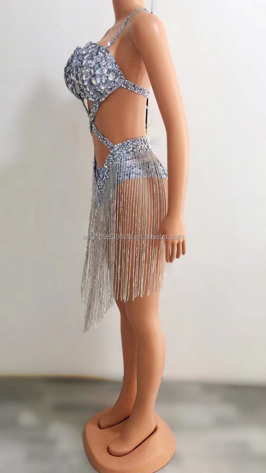 Disfraz de escenario con copa de diamante, cadena de diamantes, borla, samba, modelo latino, pasarela, fiesta, alfombra roja, club nocturno, bar, actuación