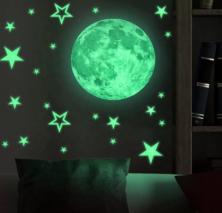 Pegatinas que Brillan en la Oscuridad - Cielo Nocturno - Paquete Grande de Luna y Estrellas
